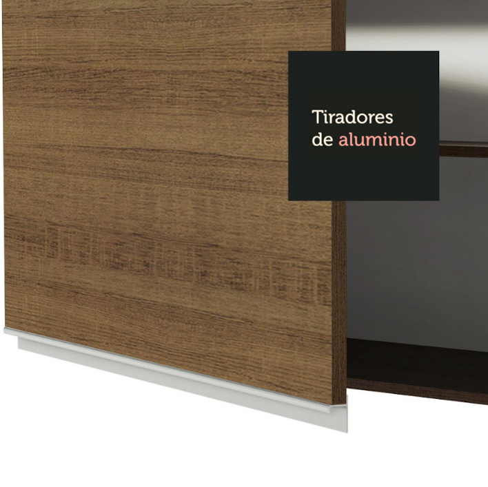 Dispone de dos puertas convencionales con tiradores de aluminio y bisagras metálicas con amortiguación para un cierre suave. El espacio interno está bien dividido en cuatro compartimentos para organizar utensilios, vajilla, alimentos y lo que prefieras.