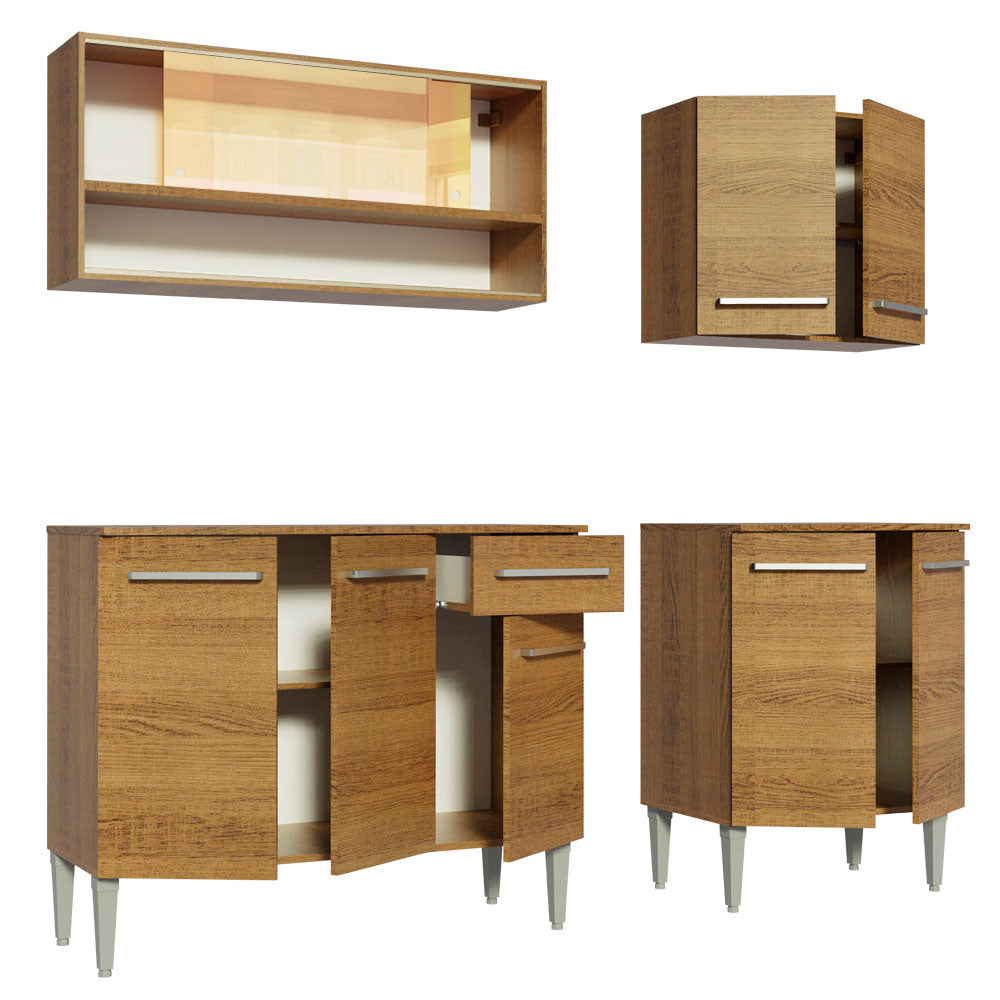 El espacio disponible es perfecto para dejar todo bien organizado. Son dos Gabinete Bajo y dos gabinetes superiores, todos hechos con materiales de calidad, como tiradores con detalles en aluminio y correderas y bisagras metálicas. Además, los módulos son independientes y se pueden montar según las necesidades de su entorno.