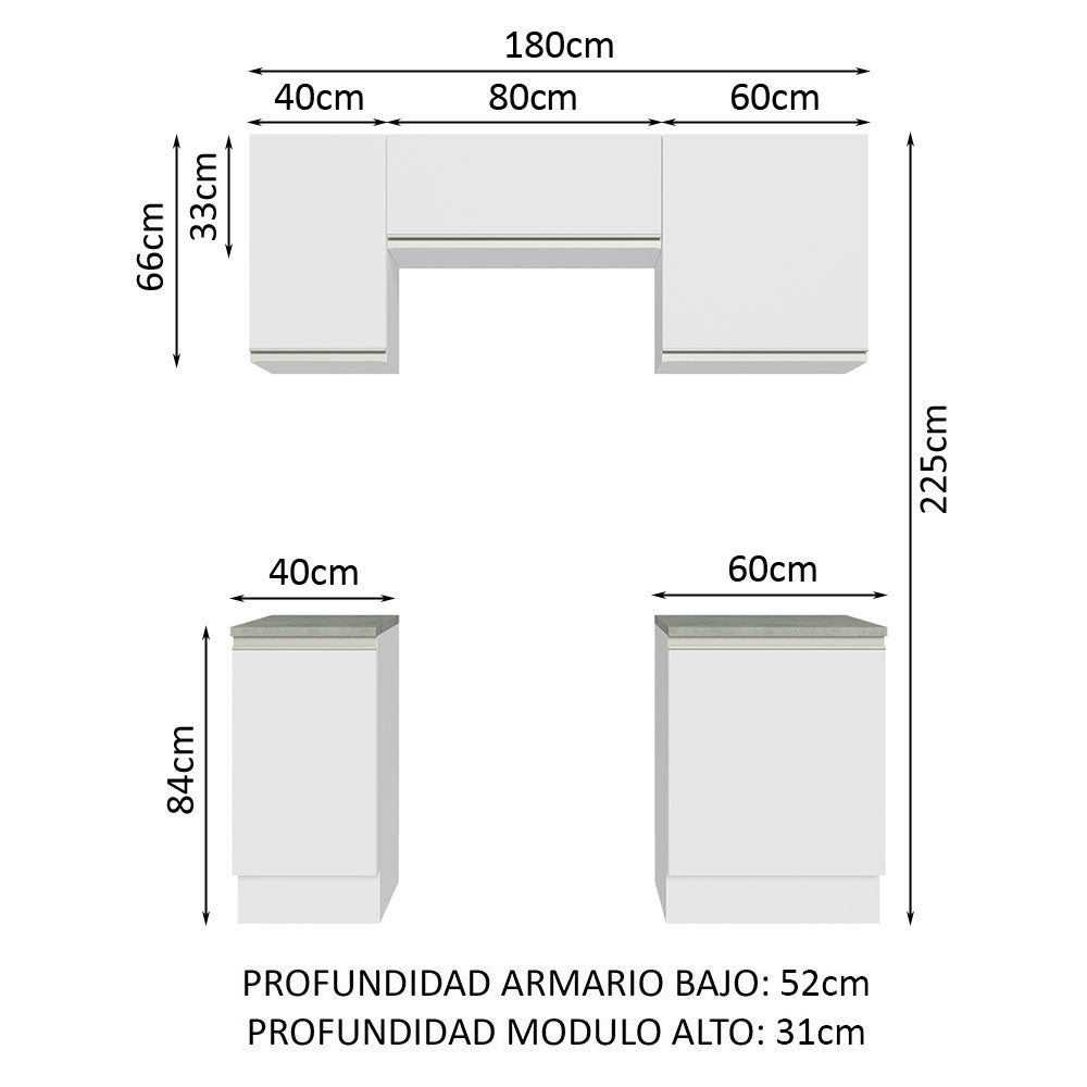 - Un (1) Gabinete Bajo de 40 cm con una (1) puerta y encimera