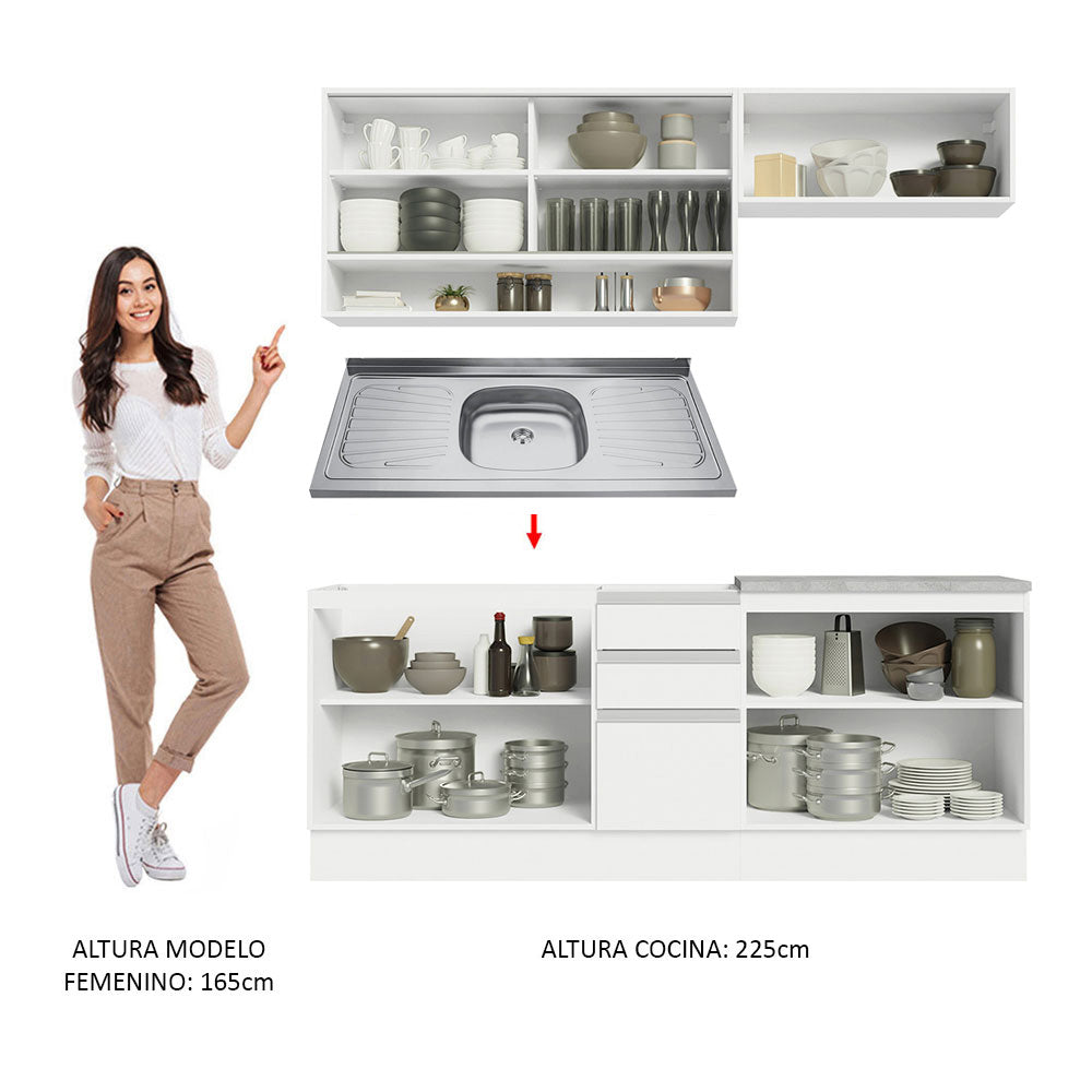Cocina Integral con Lavadero 200cm Glamy 09 Blanco