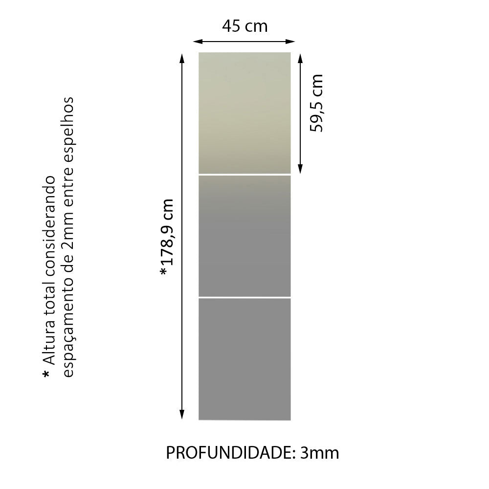 - Tres (3) espejos de 59,5 cm de altura x 45 cm de ancho y 3 mm de espesor
