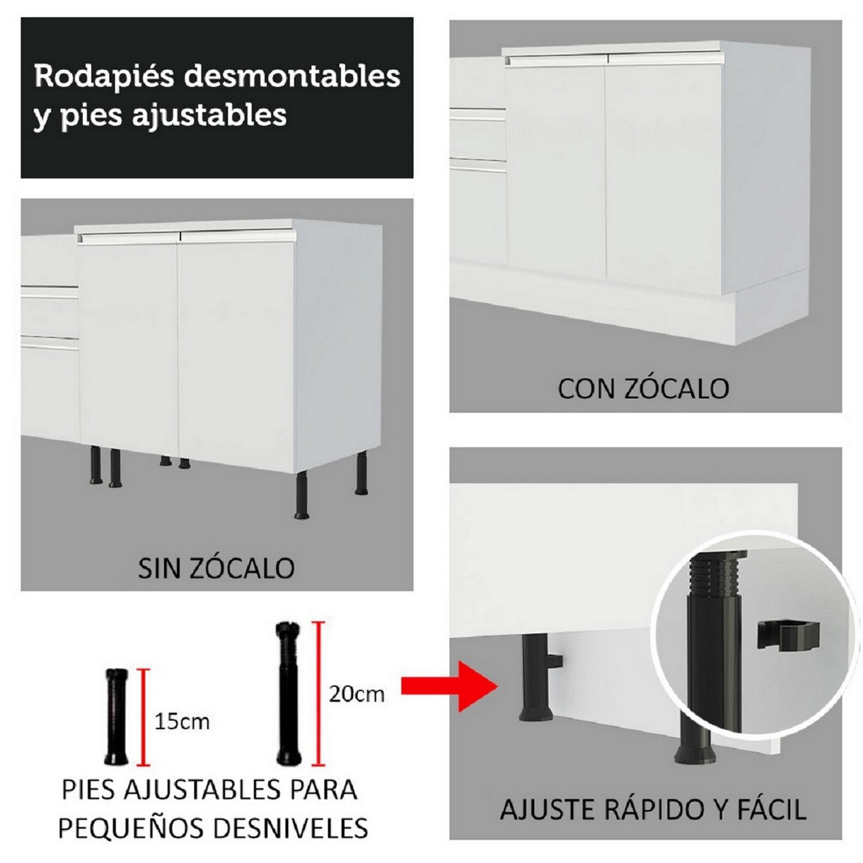Este diseño cuenta con los espacios ideales para optimizar tu cocina, además tiene zócalo removible para una limpieza más fácil.