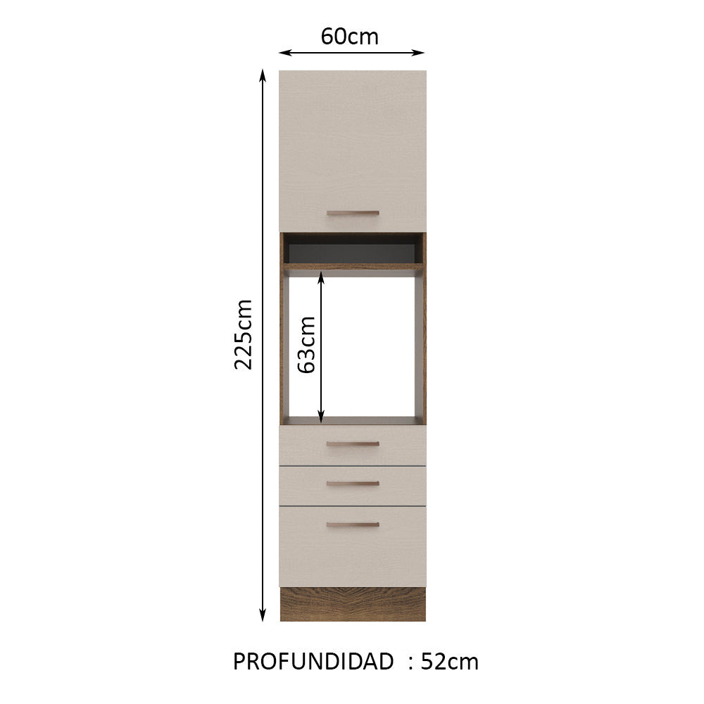 Mueble de Cocina para Horno 60 cm 1 Puerta y 3 Cajones Marrón/Crema Agata