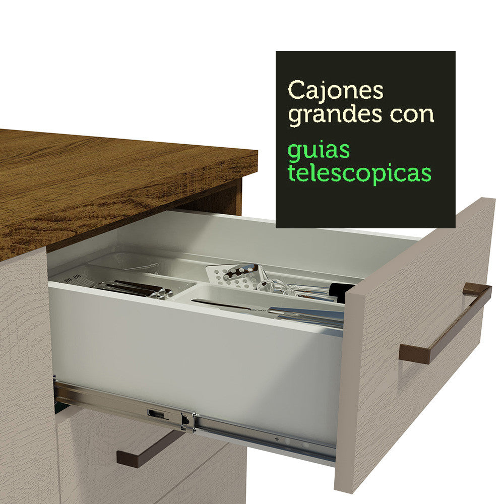 El acabado de la estructura es marrón y las puertas y frentes de cajones son en color Crema. . Está elaborado con Pintura Poliéster ecológica, proceso que aumenta la durabilidad del producto.