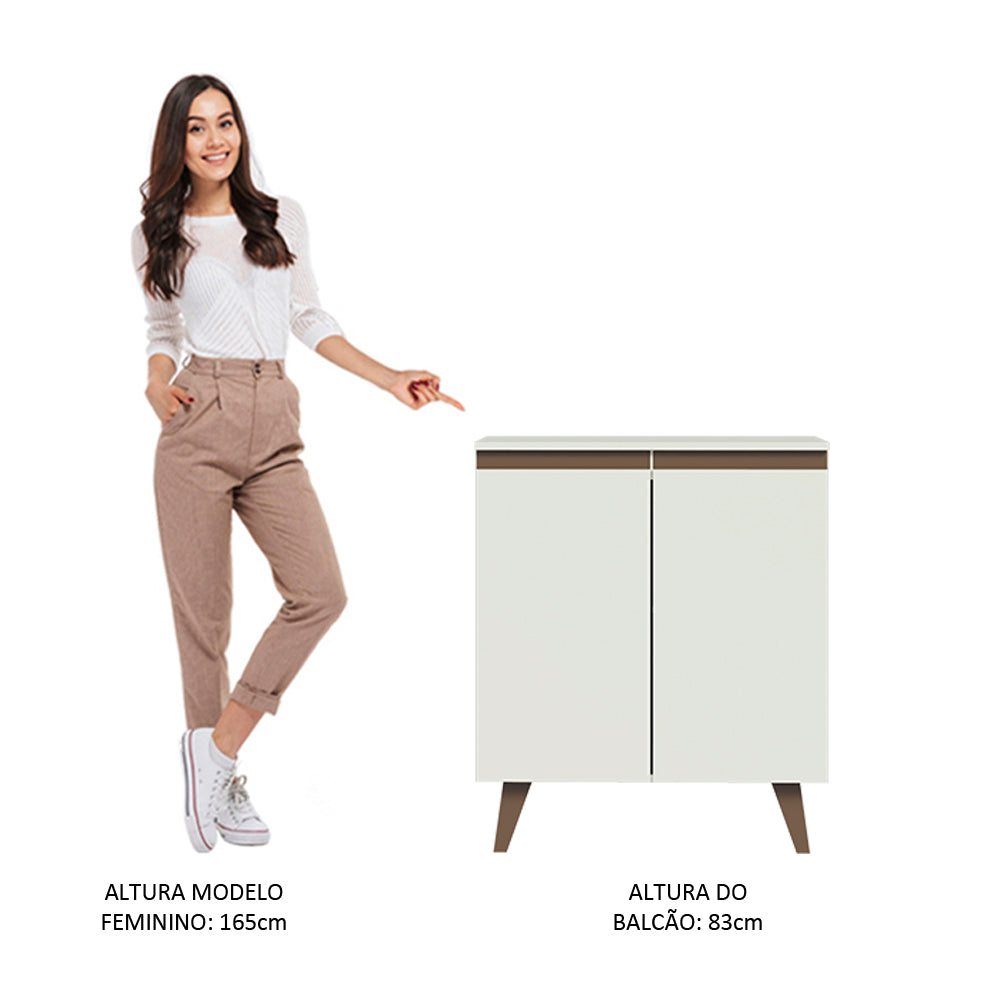 Un gran destaque son los pies de madera maciza con acabado en marrón, que confieren belleza y mayor firmeza al mueble. Además, incluye encimera en MDP, que puede ser recortada para la colocación de una estufa empotrada.